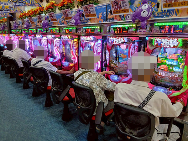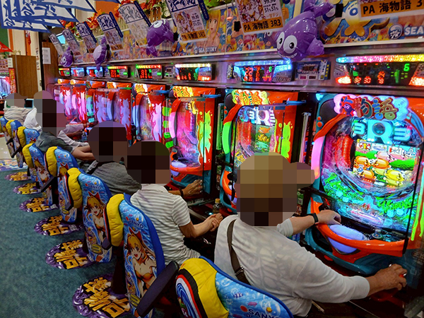 15時ごろの1円パチンコを見てみると「PA大海物語5 Withアグネス・ラム」や「PA海物語3R3」が大盛り上がり。魅力的なシーンをシマのあちこちで目にしている。