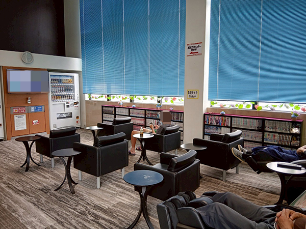 同店には広々としたレストスペースも完備されており、漫画本やテレビを見ながらのんびりと休息をとることができる。