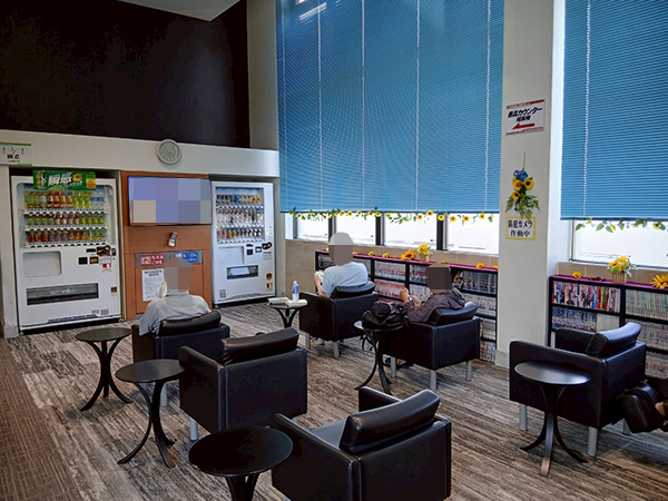 レストスペースには幅広いジャンルの漫画本が用意されており、取材時も満喫するプレイヤーが多かった。