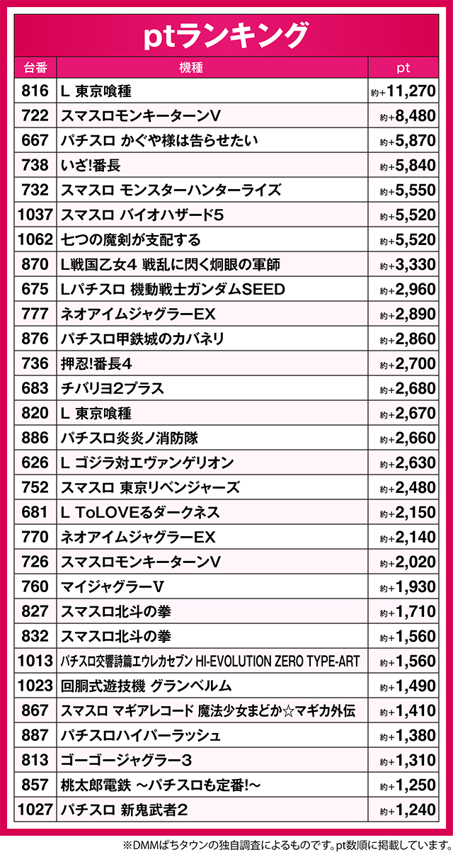 ※なお、本記事中のデータは全てDMMぱちタウンの独自調査によるものです