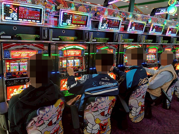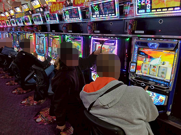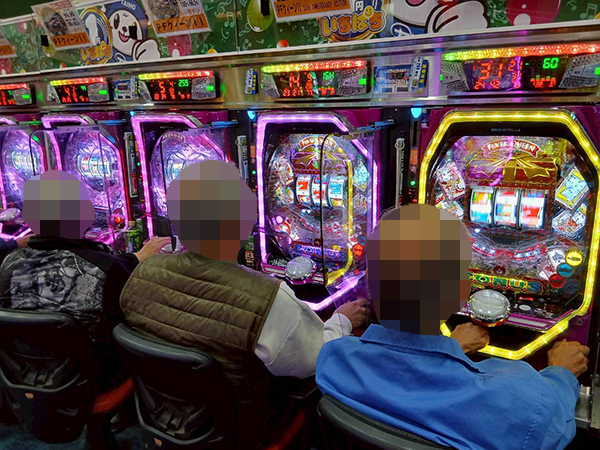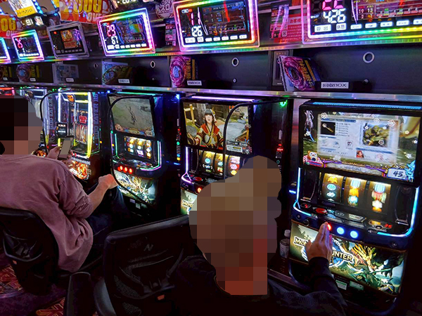 ほかにも「ネオアイムジャグラーEX」や「マイジャグラーⅤ」が活況。微笑ましいシーンをあちこちで確認している。