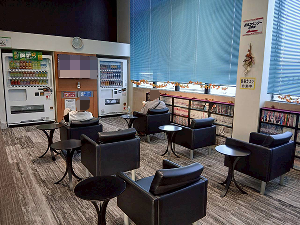 レストスペースには幅広いジャンルの漫画本が用意されており、取材時も満喫するプレイヤーが多かった。