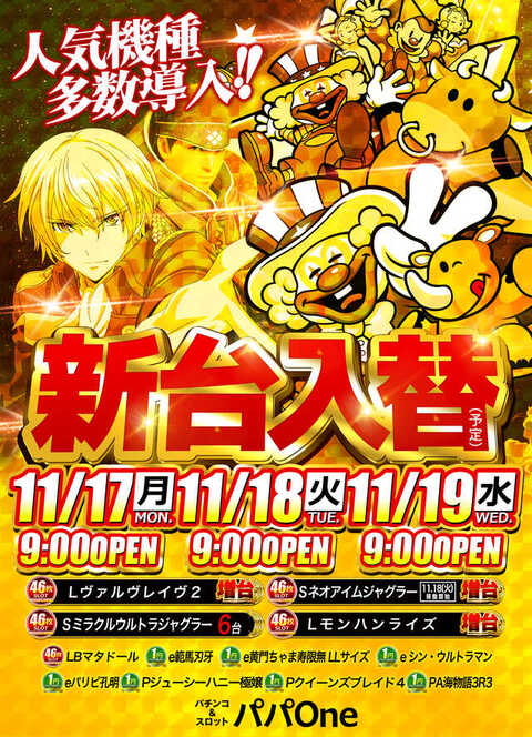 1位 11月17日(月) 2位 11月7日(金) 3位 11月8日(土)
