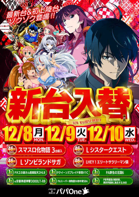 12/8(月) 【新台入替初日&3店舗合同取材】!