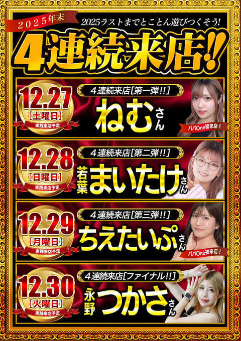 1位 12月7日(日) 2位 12月20日(土) 3位 12月18日(木)