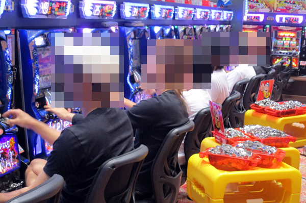 ホール内ではたくさんのプレイヤーがREALな笑顔をみせ、明るい表情でパチンコ・パチスロを満喫していた。