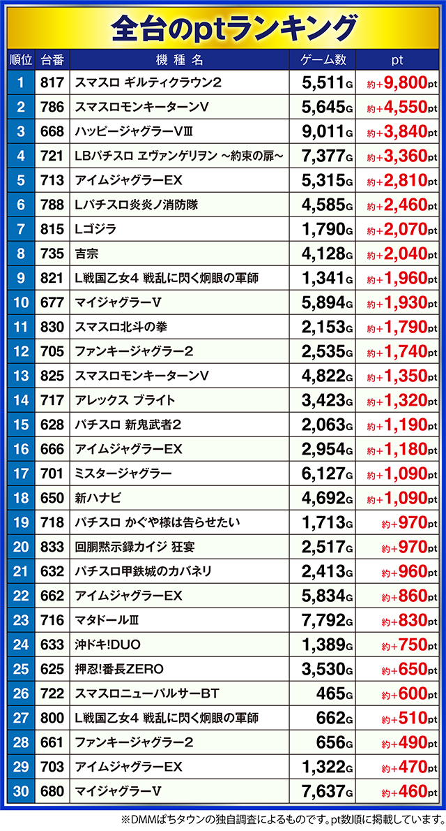 ※なお、本記事中のデータは全てDMMぱちタウンの独自調査によるものです