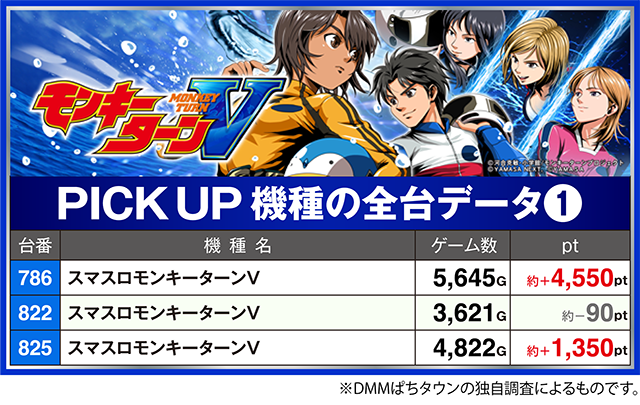 「スマスロモンキーターンV」の786番台も約+4,500ptを上回った。