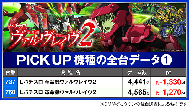 2台設置の「Lパチスロ 革命機ヴァルヴレイヴ2」は、全台がプラス!
