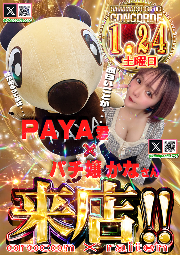 本日PAYA君来店&ぱち嬢かなさん来店💗