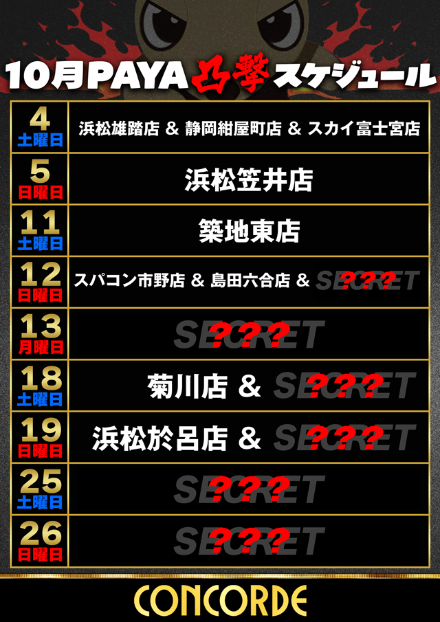 1位 10月12日(日) 2位 10月13日(月) 3位 10月11日(土)