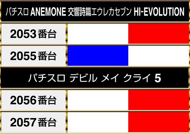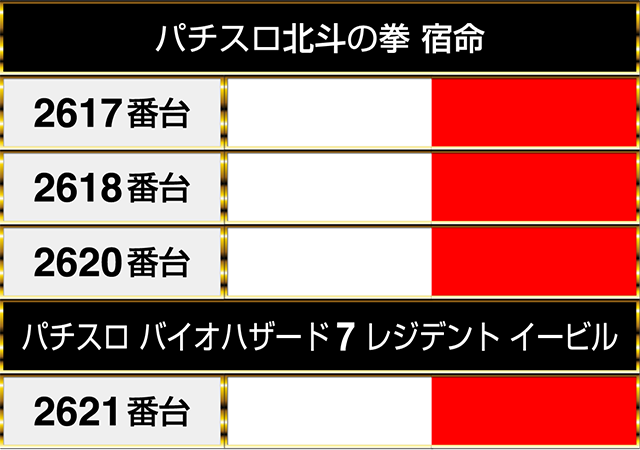 『パチスロ北斗の拳 宿命』の3台は『パチスロ バイオハザード7 レジデント イービル』の1台と連なってプラスptを記録した。