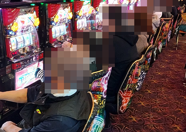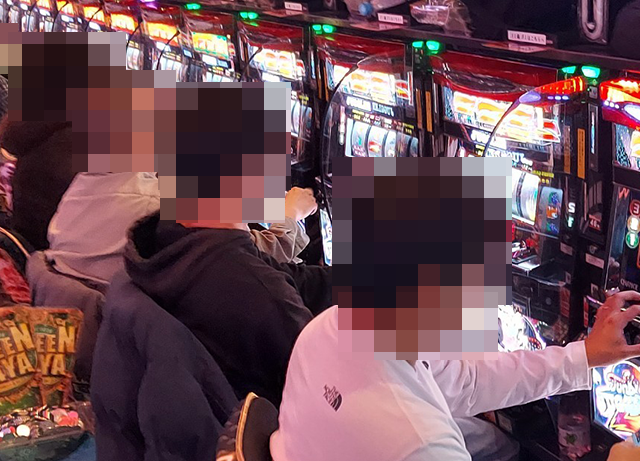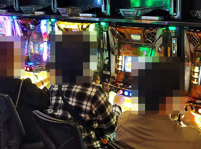 複数の場所に笑顔が並んでおり、パチスロコーナーから伝わってくる雰囲気は明るい。