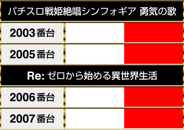 並びで設置されており、最終的には2003番台から2007番台までが連なってプラスptを記録!!