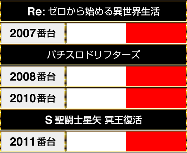 並びで設置された『Re:ゼロから始める異世界生活』と『パチスロドリフターズ』、『S聖闘士星矢 冥王復活』でも華やかなシーンを目にした。
