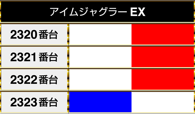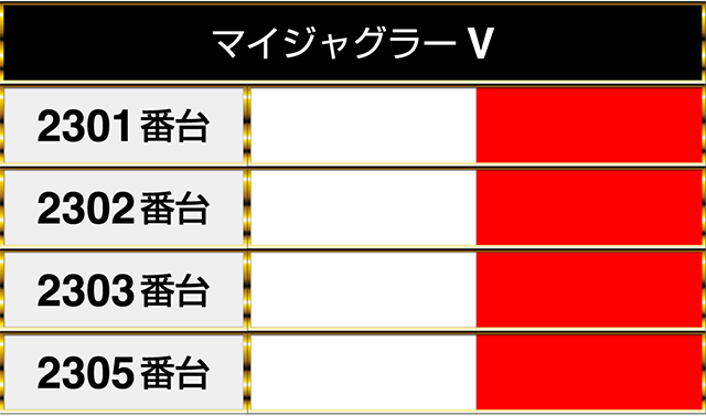 『マイジャグラーⅤ』の2301番台から2305番台までが並んでプラスptを記録!