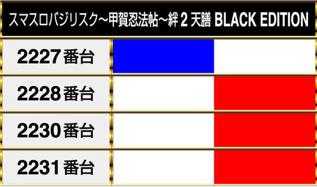 最新機種の『スマスロバジリスク~甲賀忍法帖~絆2 天膳 BLACK EDITION2』にもプラスptの台が並ぶ場所があった。