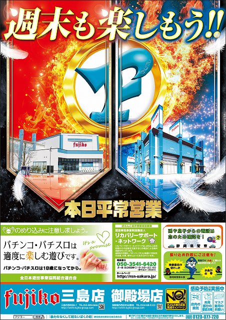 地域最大級沖スロコーナー設置中!!是非フジコー三島へ🌺