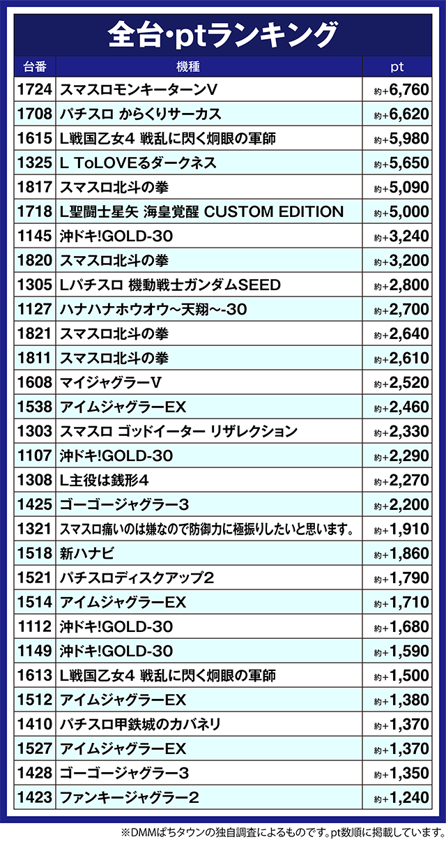 ※なお、本記事中のデータは全てDMMぱちタウンの独自調査によるものです