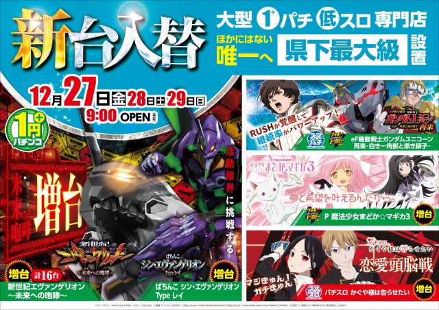 12月27日★県内最大級の大型1パチ低スロ専門店の新台入替★