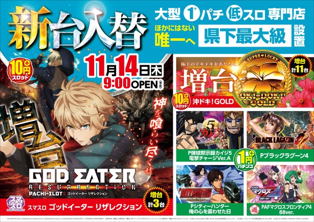 明日11月14日★大型1パチ低スロ専門店の新台入替!!!★
