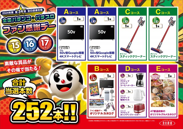 明日11月15日★全国パチンコ・パチスロ ファン感謝デー!★