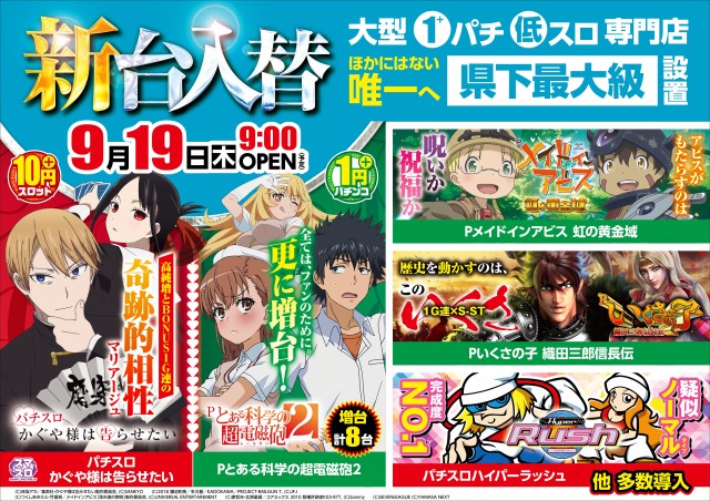 9月19日(木)★大型1パチ低スロ専門店の圧倒的新台入替★