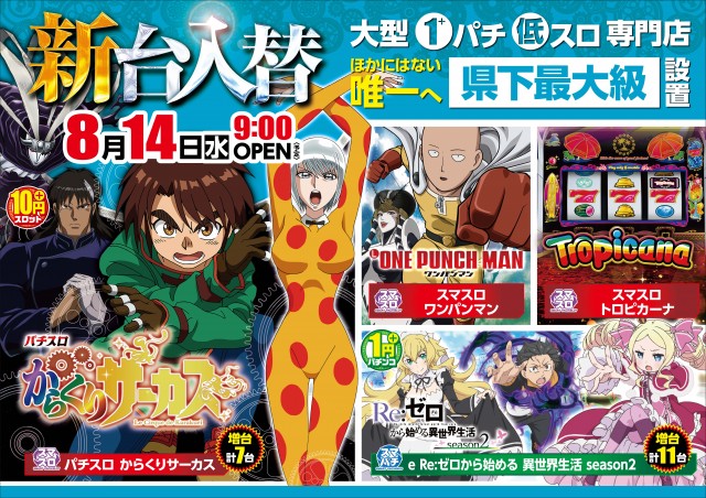 8月14日(水)★1パチ低スロ専門店の圧倒的新台入替★