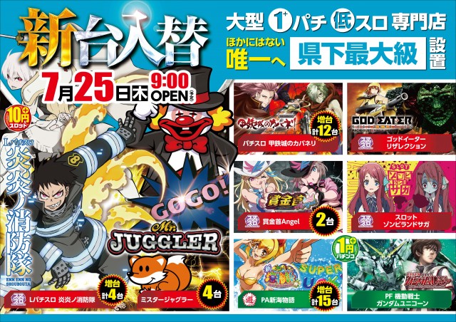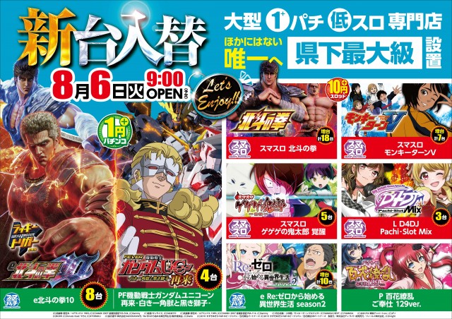 8月14日(水)★1パチ低スロ専門店の圧倒的新台入替★