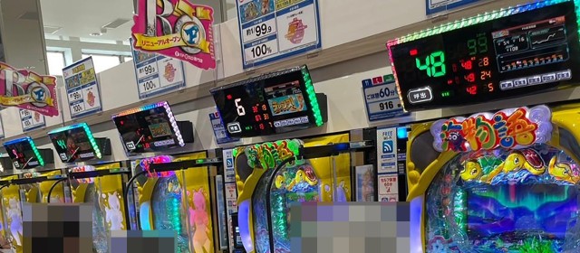 いずれも満席状態だったのが『ぱちんこ シン・エヴァンゲリオン Type レイ』『P Re:ゼロから始める異世界生活 鬼がかりver.』『PA新海物語』と、同店では設置台数が多めの機種。それぞれで大当り回数を勢いよく重ねている台が見受けられたのが印象的だった。