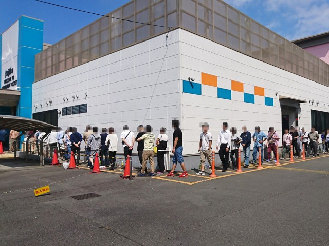 同店はパチンコ454台、パチスロ252台、総設置台数706台を誇る大型ホール。取材当日の朝は、180人以上ものプレイヤーが開店の刻を待っていた。