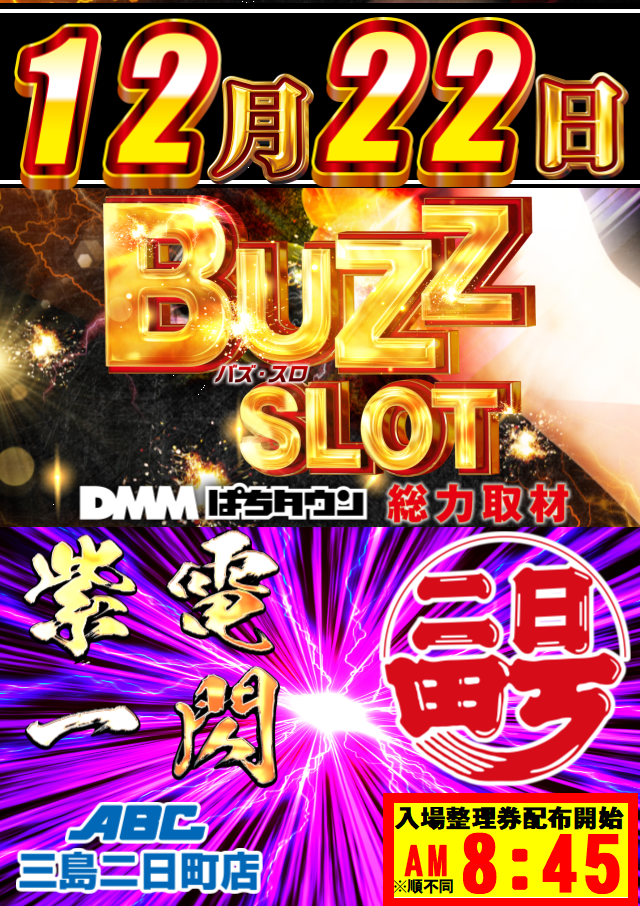 【明日のご案内】☆最新台稼働開始☆BUZZ SLOT☆