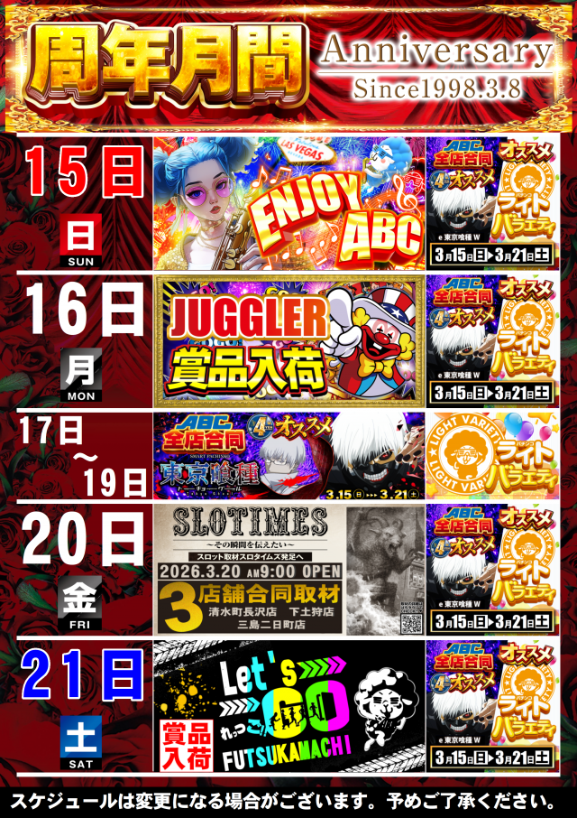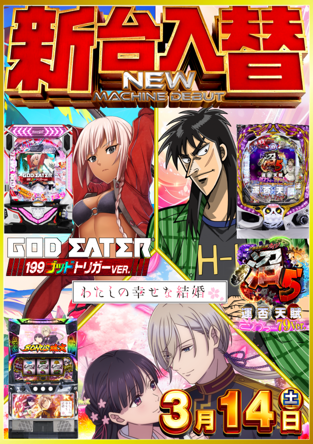 【明日のご案内】☆新台入替初日☆★周年月間★