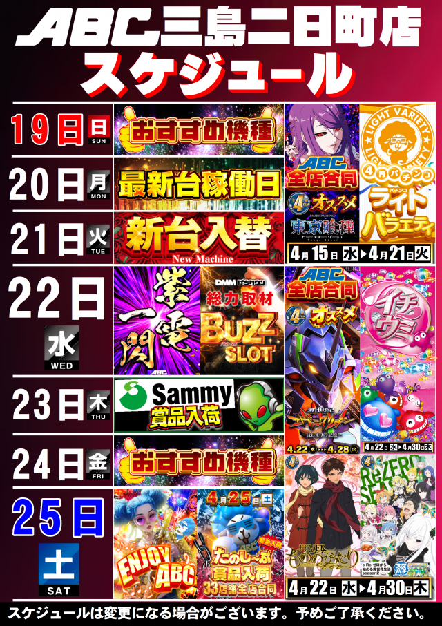 【明日のご案内】☆最新台稼働開始☆話題の機種続々と!