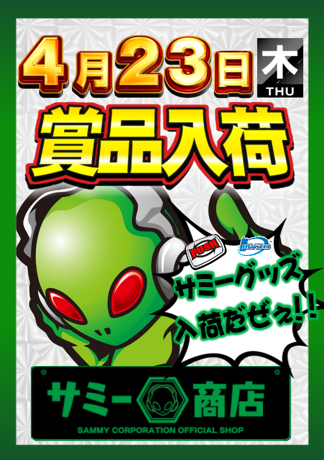 【明日のご案内】☆サミー賞品入荷♪全店&自店オススメ☆