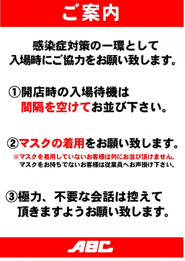 新型コロナウイルス感染拡大防止の為、対策を行っております。