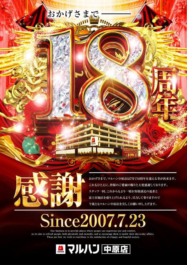 マルハン中原店 7月23日(水)ーおかげさまで18周年ー