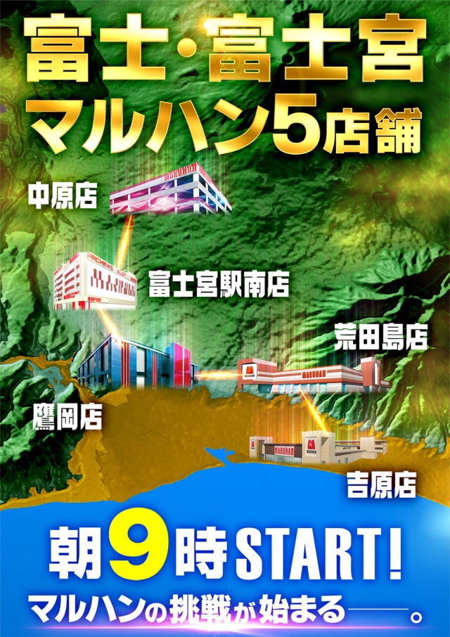 富士・富士宮にマルハン5店舗集結!ご来店お待ちしております!