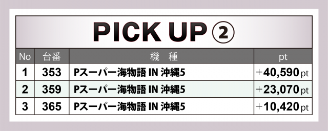 海物語シリーズも『エヴァ15』に匹敵。『Pスーパー海物語 IN 沖縄5』 では353番台が+4万オーバーのヒットとなった。