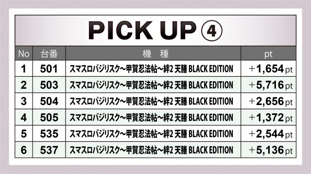 『絆2BLACK』も『スマスロ北斗』に負けず劣らず。+5千超が2台と、こちらも前回に続いてハイクオリティを維持した。