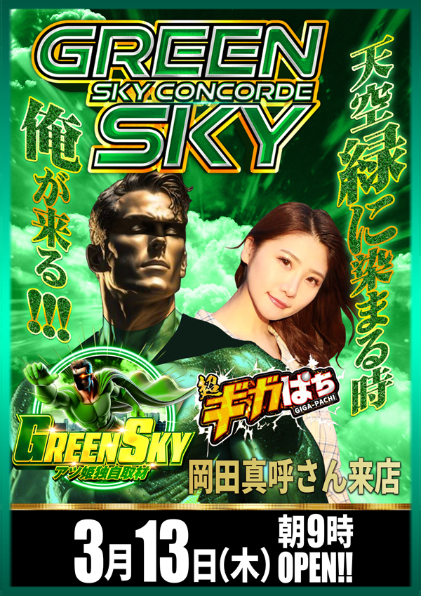 明日3月13日(木)空を翔る!!GREENSKY!