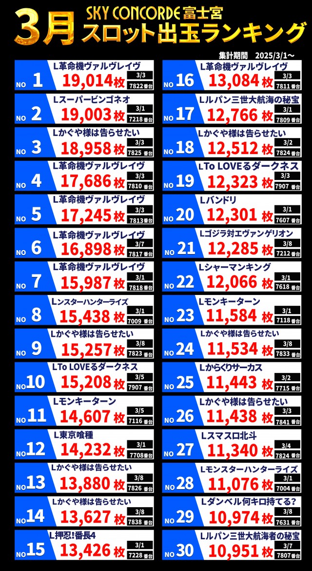 SKY CONCORDE富士宮店のお知らせ一覧