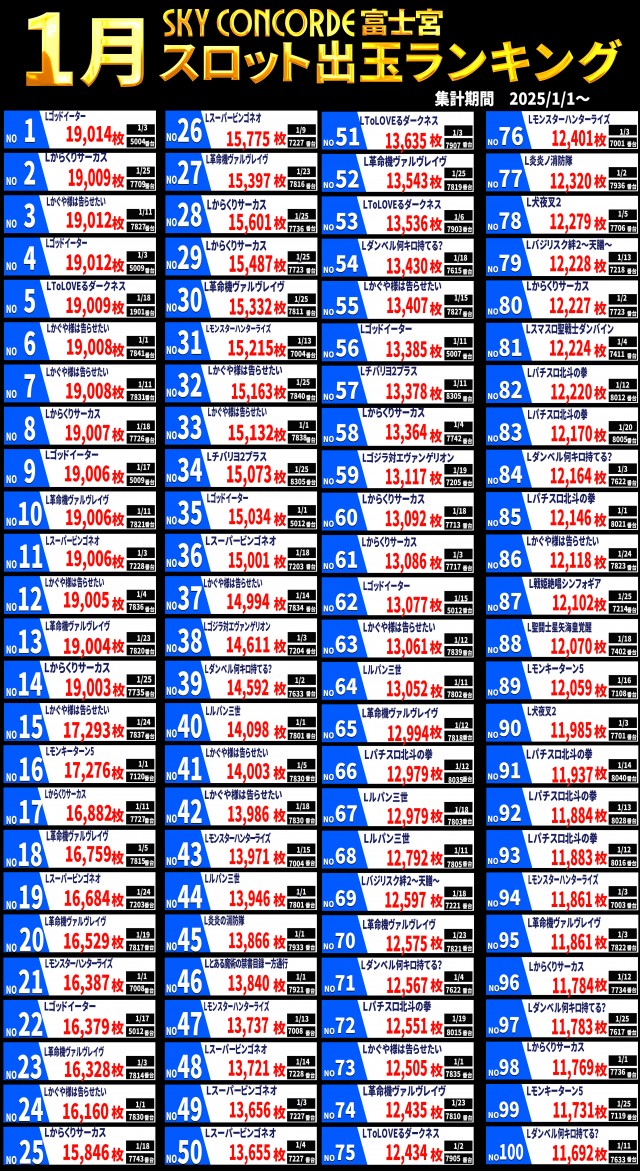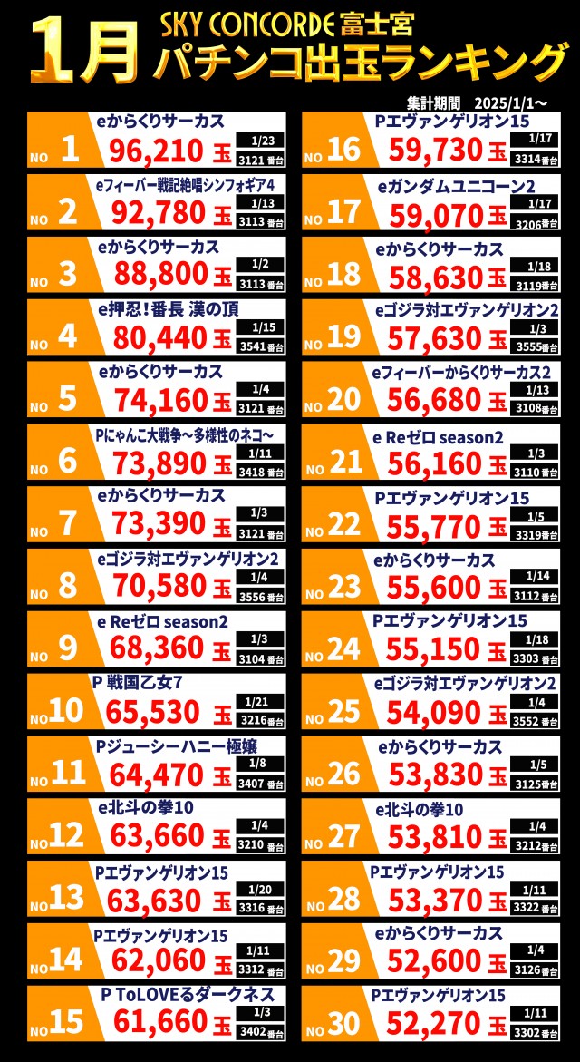 1位 1月18日(日) 2位 1月12日(月) 3位 1月17日(土)