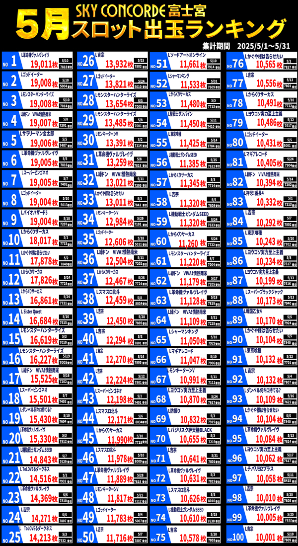 1位 11月15日(土) 2位 11月22日(土) 3位 11月23日(日)
