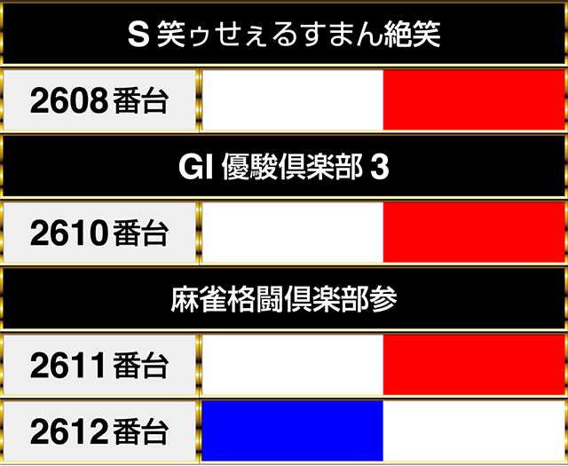 バラエティコーナーでは、『S笑ゥせぇるすまん絶笑』と『GI優駿倶楽部3』、『麻雀格闘倶楽部参』の3台が連なってプラスptを記録した。