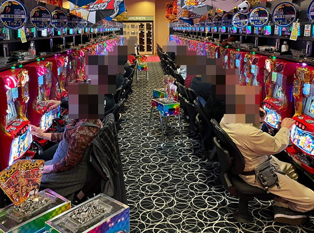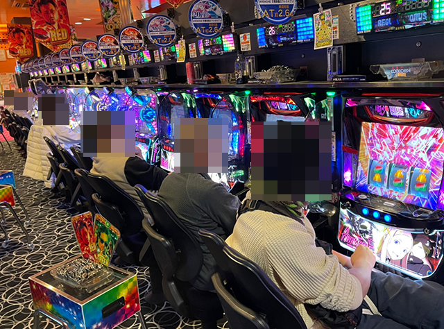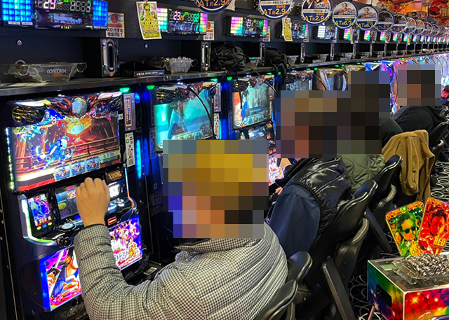 16時頃の店内はパチスロの稼働率がとくに高く、たくさんのプレイヤーが遊技を楽しんでいた。