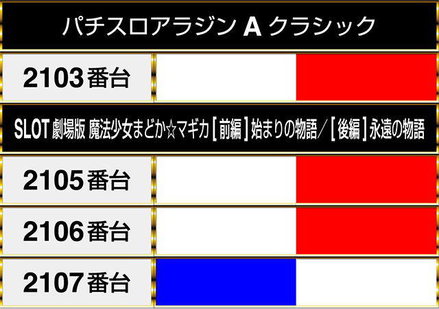 並びで設置された『パチスロアラジンAクラシック』と『SLOT劇場版 魔法少女まどか☆マギカ[前編]始まりの物語/[後編]永遠の物語』も活況!