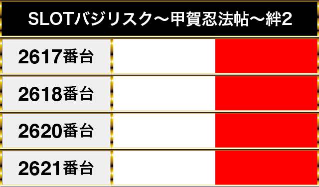 『吉宗RISING』や『スマスロバジリスク~甲賀忍法帖~絆2 天膳 BLACK EDITION』に対する支持も厚く、空き台は少なかった。