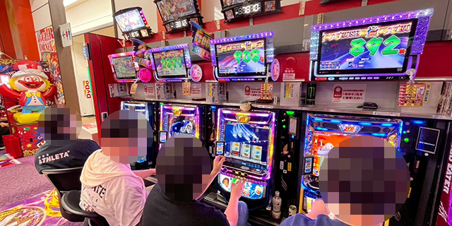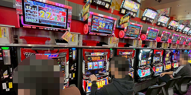 取材時、店内はとくにスロットコーナーが大盛況で、夢中でレバーを叩くプレイヤーであふれていた。どのような結果となったのか、さっそく見ていくぞ!