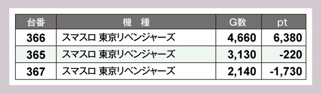 『スマスロ 東京リベンジャーズ』は稼働が高かった366番台が成果をあげている。